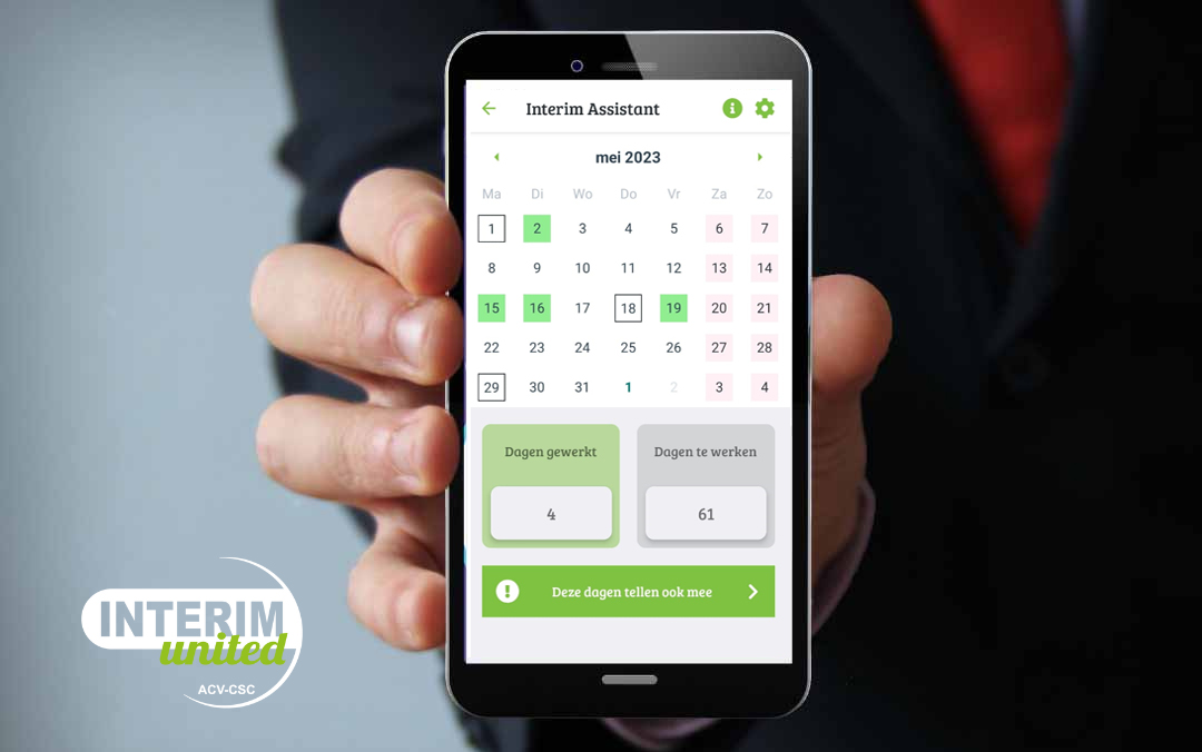 Dankzij de Interim Assistant loop je geen centen mis! Deze gratis app houdt je gewerkte dagen en uren bij in een handig overzicht en vertelt je: