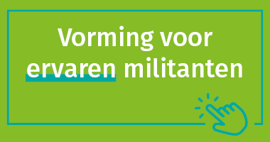 👉 Via de knoppen hieronder vind je het vormingsaanbod voor nieuwe militanten en het aanbod voor ervaren militanten. Nieuwe militanten starten met de basisvorming. Heb je de basisvorming al gevolgd? Klik dan op de knop voor ervaren militanten.