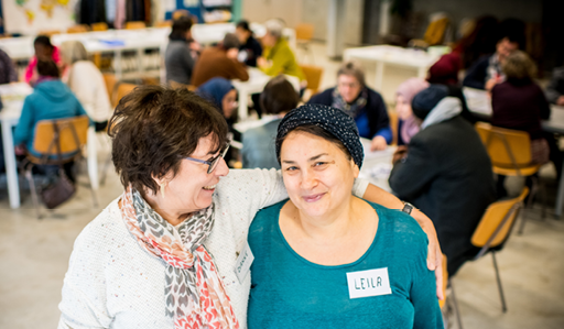 Leila volgt Nederlands bij praatcafé Babbelonië. Een initiatief van verschillende Oost-Vlaamse steden en gemeenten.